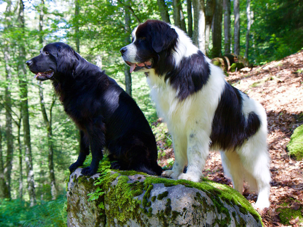 Landseer © Pixabay, FotoEmotions (#1579854) | Aufnahme: Links (Flat Coated Retriever)/Rechts (Landseer)